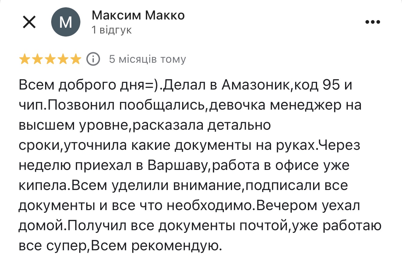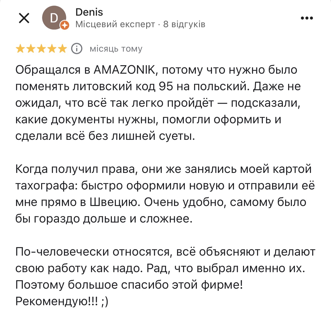 Наши клиенты уже прошли оформление Кода 95, Чип-карты и замену прав в Польше — и делятся своими впечатлениями: